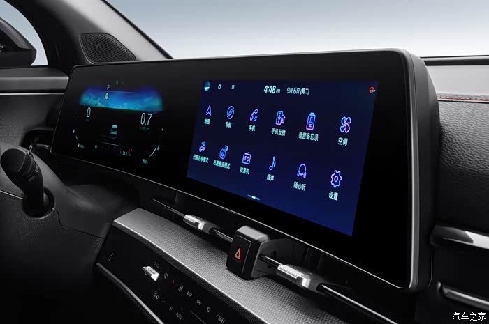 标配双12.3英寸一体式触控大屏,整体偏向驾驶员一侧,体现了以用户为中心的造车理念。看样子常用的空调按钮并没有跟风集成在触控屏内,还是可以实现盲操作的,这点值得好评。跟从不盲从,坚持自我很重要。