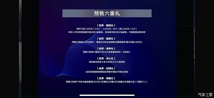 官网已经开启预售,并有多重大礼回馈。有兴趣的同学可以自己去官网或者4S店问问。为什么我买车那会不流行这个呢?哈哈。