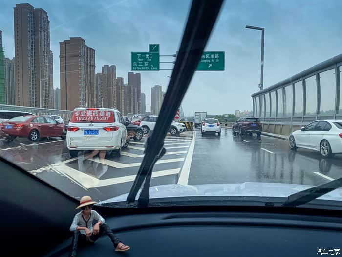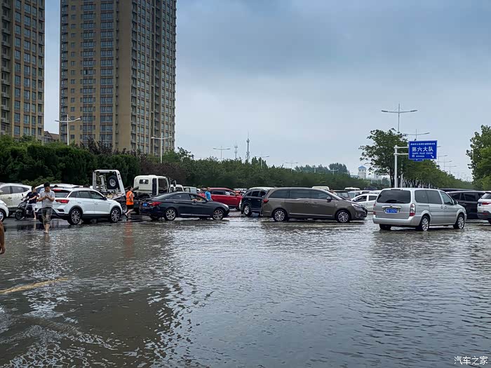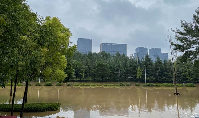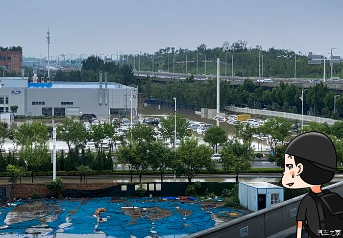 我看了看高架桥下不远处的威佳汽车园,基本上一片汪洋,一大半的车都泡在水里,不知道4S店是不是要哭晕过去了。
