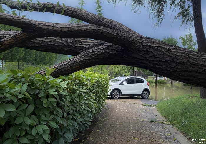 个别幸运车开到了公园高处,避免了泡水。昨晚暴雨把大树也刮倒了,险象环生