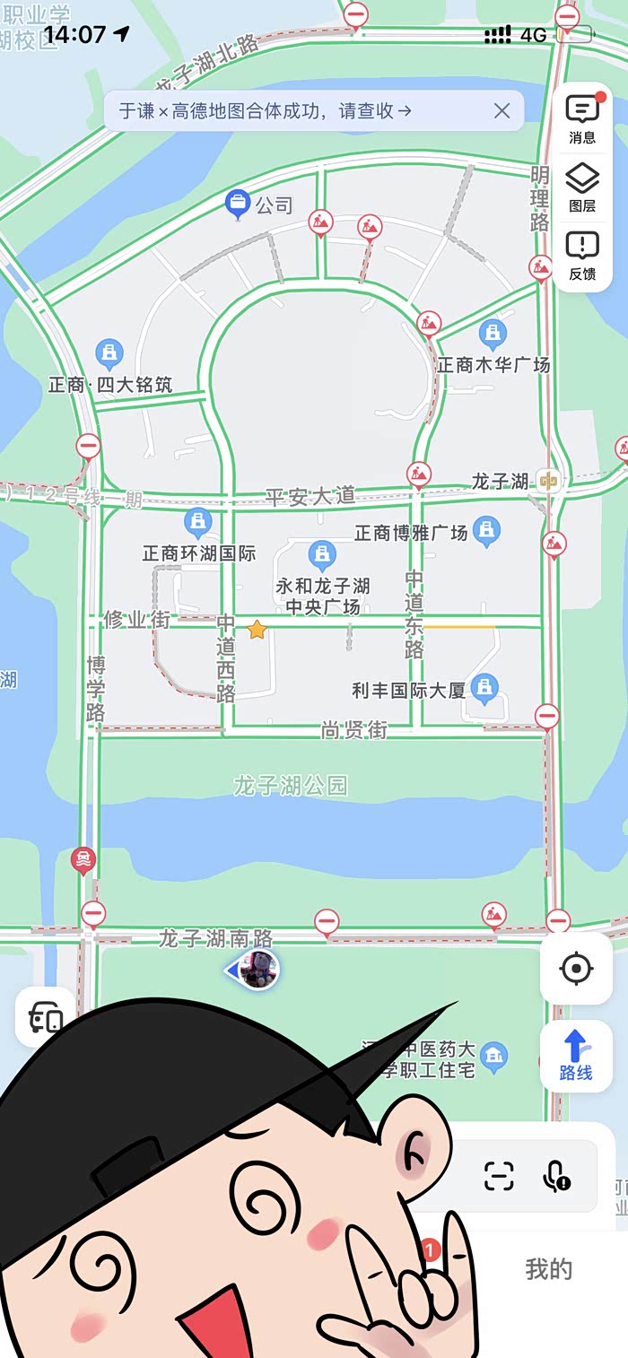 终于来到了公司所在的龙子湖岛外,这里已经沦陷了,这里成了真正的湖,昨天公司除了我提前请假离开,很多同事都困在了岛内,宾馆全部爆满,想想我还是挺幸运的