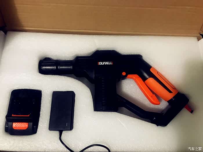 这次的洗车工具:之家积分免费兑换的洗车机,还有很多车品也是免费兑换的哈哈。这个洗车机是无线锂电的,电量完全够用洗一台车,水压一般,跟插电的没法比,洗小白用了3大桶水。