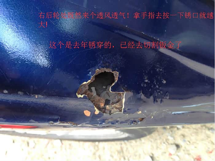 25:关于车漆和生锈,我看同悦原厂的车漆也怎么样,到目前主要是门和后轮上部方向车漆表面起了一点一点的的“车漆气泡”这个预兆应该是里面的铁皮要从里面锈到外了。门的位置车漆都爆漆了起一个个鼓包,扣掉发现里面的铁皮都生锈了,拿东西刮锈粉一层层的掉,有时候想想一拳头过去会不会打穿车门。最可怕的是在后轮拱最容易生锈,自己已经去修理厂切割做钣金喷漆一次了,底部两边也不想多说漆都是一片片一扣就掉,底盘没有太明显的生锈。发动机盖表面漆有一些小洞可以看到里面白色的底漆应该是鸟屎或拉土车掉落的小石子打出来的。随便拿补漆笔补一下。我也懒得去搞钣金和做漆了,买只补漆笔回来看看哪里掉漆就补哪里,延迟它生锈继续扩大的时间。没有一款补漆笔是和我蓝色车身相同的。唉,不想说了!