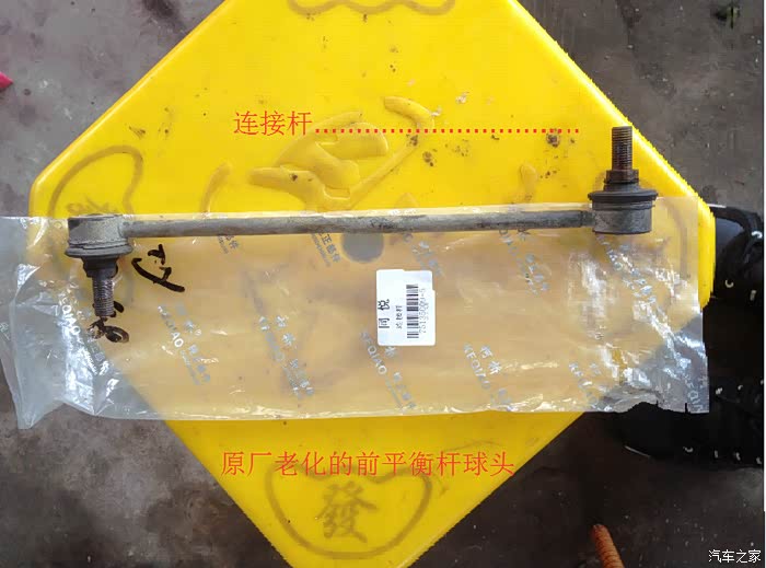 8:关于《前平衡杆球头》的问题,本人之前(参考第三条)出现异响修理店说一边前平衡杆球头问题,换上店里的配件还是不能解决,店里的配件是副厂的,换上去打方向很紧,没有解决问题干脆就不换了。到我要换(参考第三条)万向节总成的同时发现前平衡杆球头已经用了很久也需要换了,顺便买一对回来和万向节总成同时换上去。所以关于前平衡杆球头坏了会有怎么样的问题本人没有遇到过或遇到也没注意所以无法说明,网上卖前平衡杆球头35元一支。注:换前平衡杆球头需要上升降机拆下两边轮胎,依修理速度等因素耗时大概一个钟,工时费80-100元。参考。