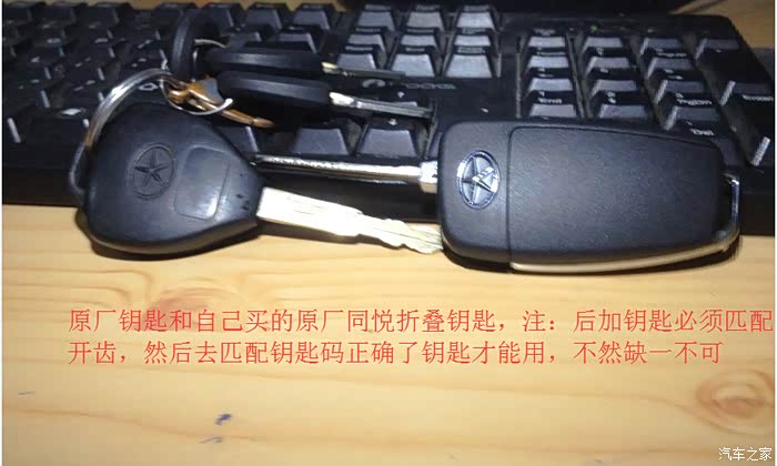 11:关于折叠钥匙,本人换过折叠钥匙在这里就跟大家说说一下,折叠钥匙网上有卖40-50元,买回来的折叠钥匙是没有经过开齿的,所以大家必须通过两种方法,第一方法去4S店。第二种方法去那种打钥匙开锁店,大部分都有机器帮你开齿匹配钥匙码的。我就是用第二种方法,你要先去店问轿车配新钥匙能不能开齿解码,他会问你是什么车型,如果他说可以解就十之八九能解,问清楚了你才买回来去匹配。方法是用原车钥匙和新的折叠钥匙匹配开齿,然后用小电脑插入驾驶位下方的原车电脑接口,然后在电脑上选择车型然后按下原车钥匙按键释放出信号码,然后用原车的码匹配到新的折叠钥匙才能用,这个过程都是需要按下原车钥匙按键和新的折叠钥匙按键释放信号对接的,我去钥匙店开齿解码一共花了80元,用半个钟头。说真的折叠钥匙是奥迪A6款的,钥匙主板是江淮原厂的。绝对能用,如果不能是匹配的问题。折叠钥匙和原车钥匙一个天一个地,拿在手里手感很好档次逼格瞬间......