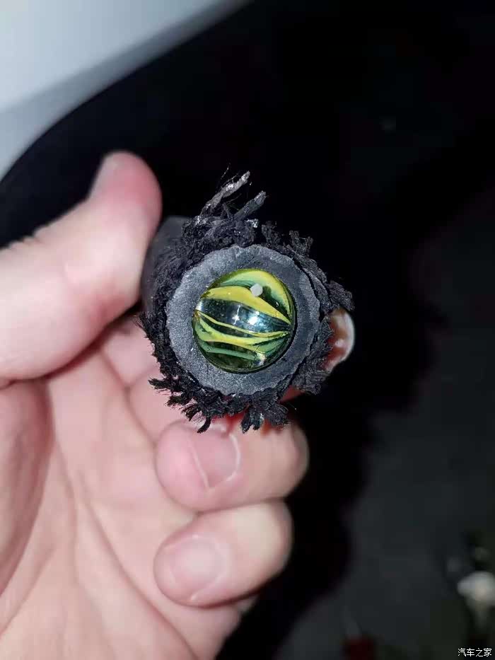 排气管那端的内径就更窄,目测是11mm左右,刚好弹球不会掉落进去