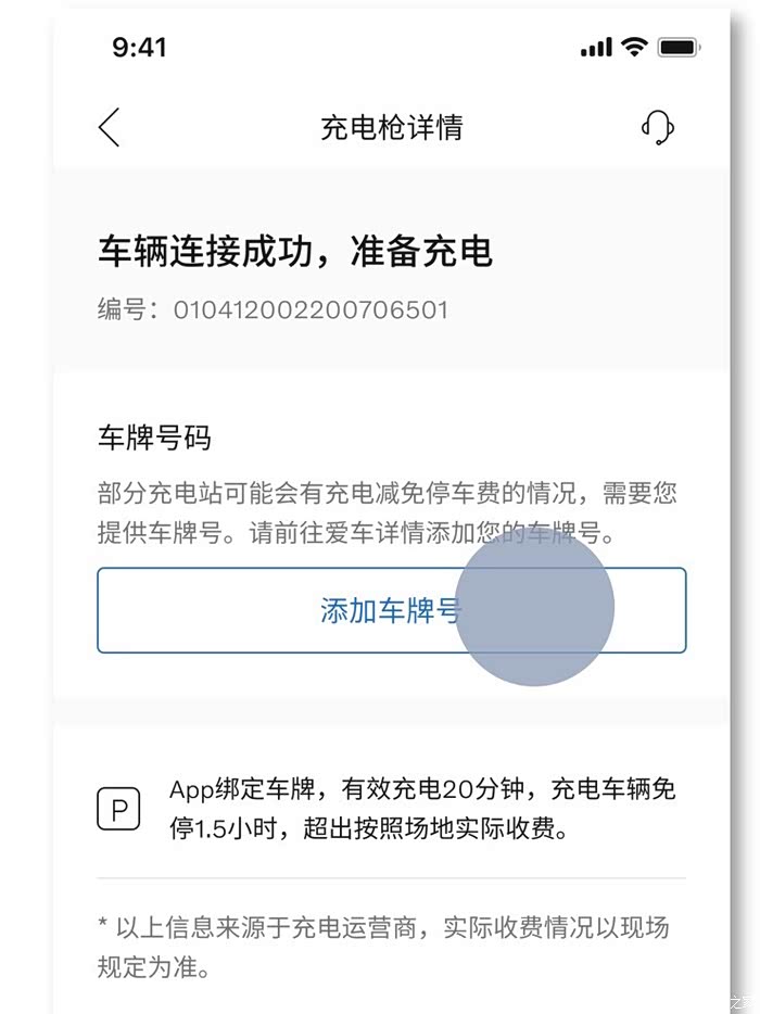 进入充电枪详情,如您己绑定车辆,车牌将会自动带入。
