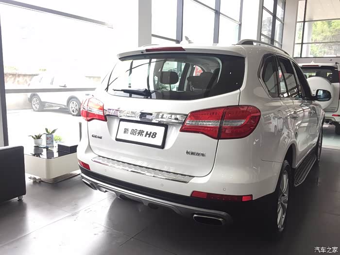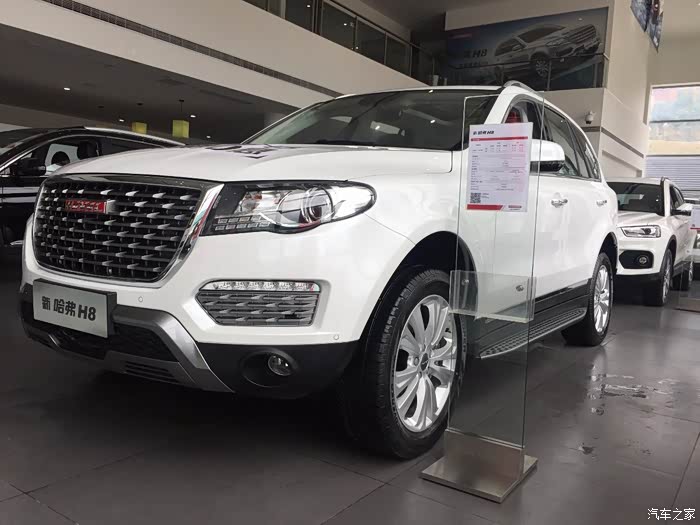 我家的哈弗H8提车有半年时间了,在是一次车展上买的。昨天到4S店去保养车子,顺便在销售展厅里转了哈,看到了全新哈弗H8,销售员告诉我说,全新H8今天才刚到店。赶紧转着看了,老婆说这新款车怎么看起来比我们的大呢。不会吧,明明尺寸都是一样一样的。要求试驾哈,销售员告诉我说,试驾车还没有车。。。先上点图片吧,看哈外观,才买了半年,居然上新款了,心里那个纠结,一定要等试驾车到了过来试驾对比哈。要不然心里不爽快啊。