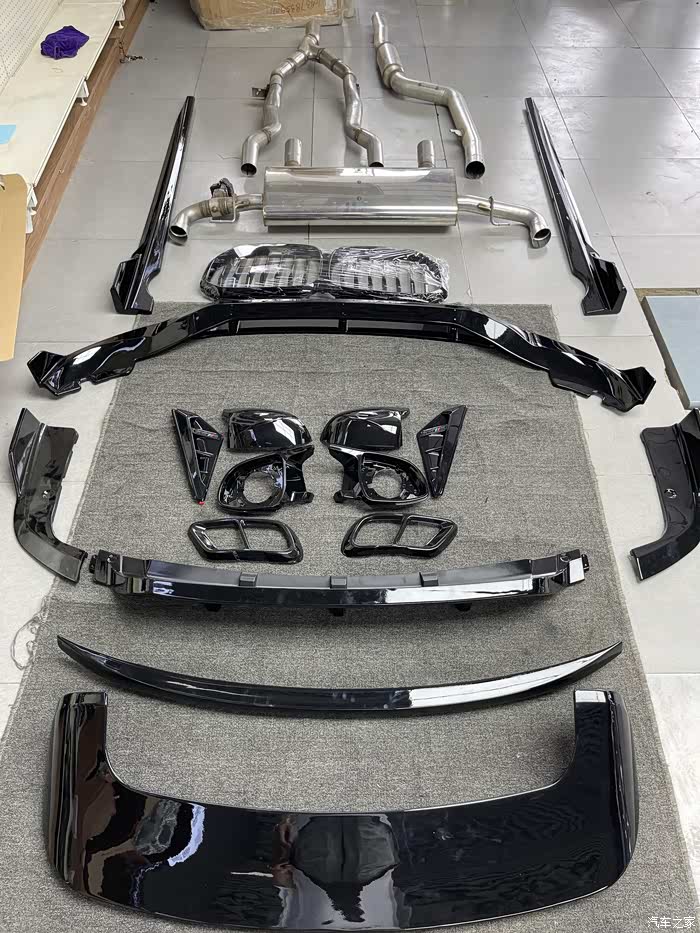 来个全家福:mp排气,黑武士全包围套件(中网,前唇,侧裙,牛耳,尾翼,四出排气口等等)