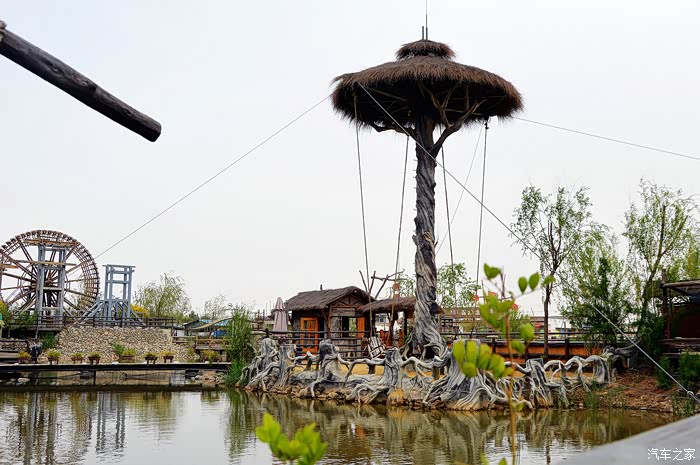 园区内到处都能看到这类原生态的建筑风格元素,旧渔船、干打垒、原木桩、石围墙、老水车等黄河流域典型的建筑元素一下子就映入了眼帘。在这里的历史、文化、自然景观融为一体,处处见景致、处处有情怀。