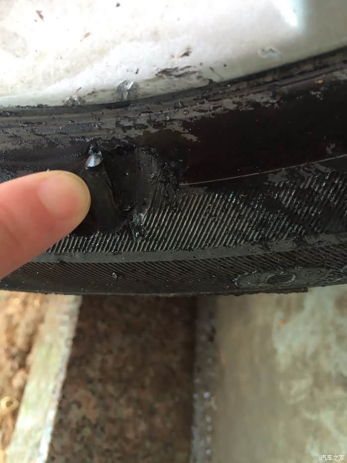 新车不到两个月。第一血,感觉有切得有点深,但是好象没伤到钢丝这类的,帮我看看要不要换胎的?