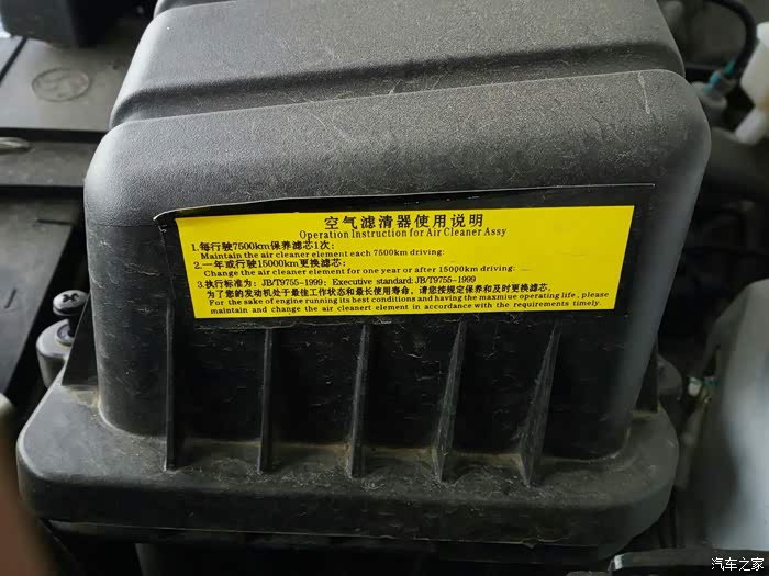 行驶7500km保养滤芯一次,一年或15000公里更换滤芯