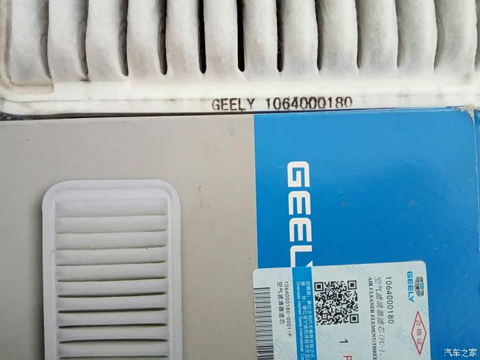 这是旧的正厂滤芯,上面印有吉利的loog和厂家零件编码,比副厂厚实一倍多!