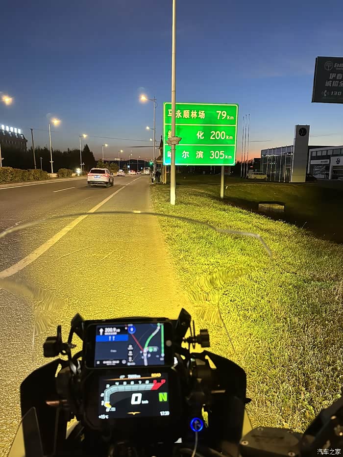 到宜春市区都天黑了,看到哈尔滨还有300公里,直接高速公路,今晚入住“夜幕下的哈尔滨”。
