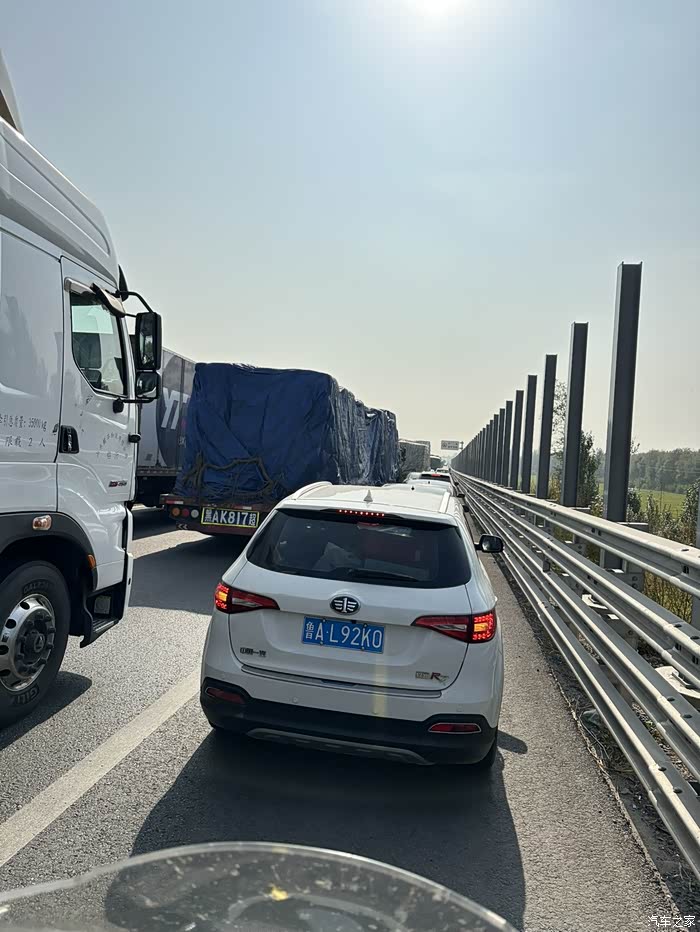 其时从这个服务区回家有两条高速线路,其中之一就是京哈高速,可以路过山海关,想下高速去打卡,但是这个决定在节假日跑高速还是错误的,因为京哈高速从辽宁省进入河北地界开始,有两次长时间大堵车,一次是两个小时,一次是40多分钟,没办法,应急车道都是汽车,只能和汽车一样原地等待,期间,也有好几辆小摩托穿插车流中毫无阻拦的通过了,羡慕。