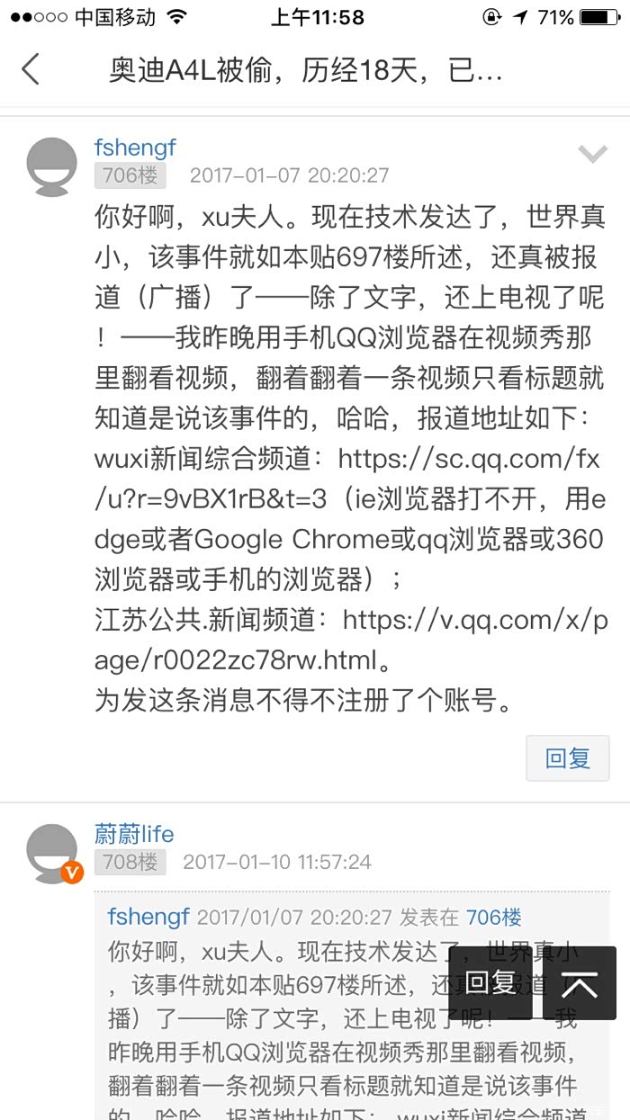非常感谢706楼网友给我贴出电视媒体的报道!也真的非常感谢无锡警方的大力支持!人民英雄当之无愧!有他们这么一群可爱的人我们才有安定的生活!向所有警察致敬!为我以前对警察的不信任自省!