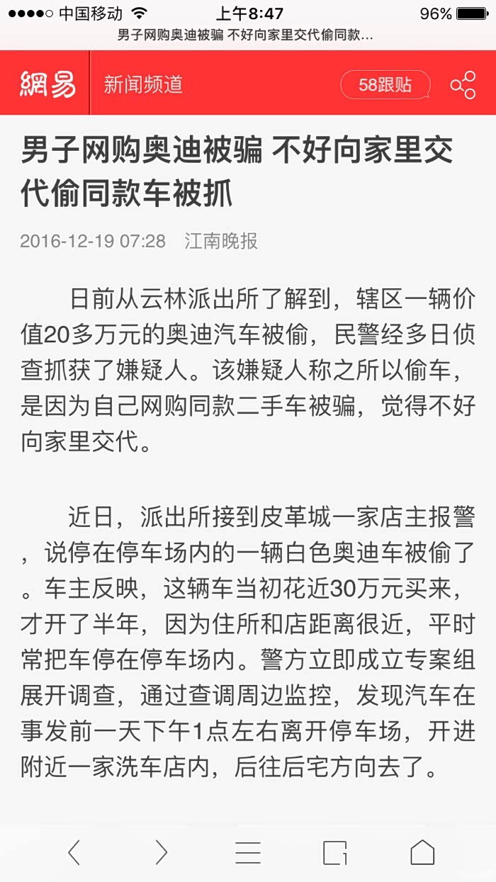 依稀记得事情过去一星期,说是有怀疑对象了,这样的消息对我们来说有多重要啊!怕就怕希望越大失望越大,心情再怎么浮躁也得静静等待……(在这里允许我快进?一下)直到电话响起说车找到了,我婆婆高兴得拍起手来,让我们去检查被改动的内饰,他们事先确认了发动机没有改过,所幸只是修改了内饰,整车找回来了。开心到不知所以!