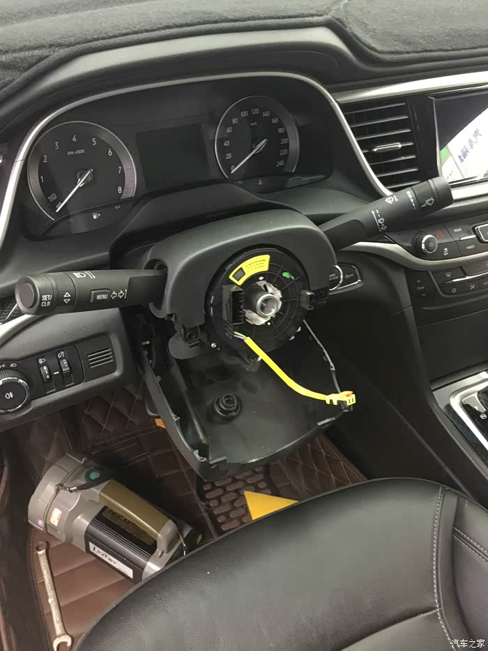 再卸掉方向盘柱下面的螺丝 拆开方向盘柱 难度稍大~