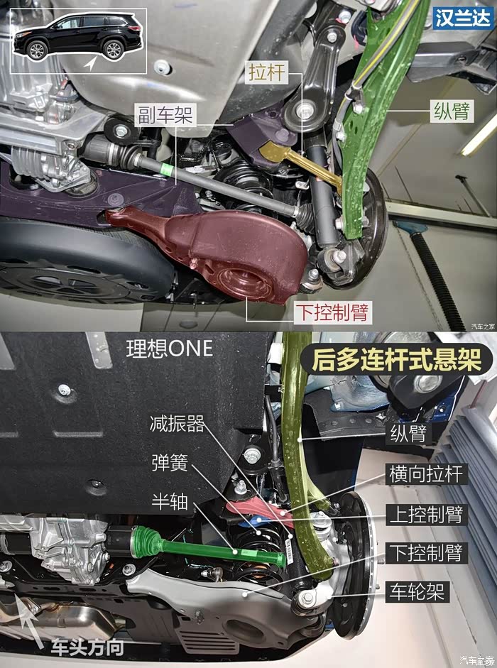 看了理想ONE的悬挂图片,感觉基本是模仿的汉兰达吧?前悬挂和后悬挂几乎都跟汉兰达一模一样。