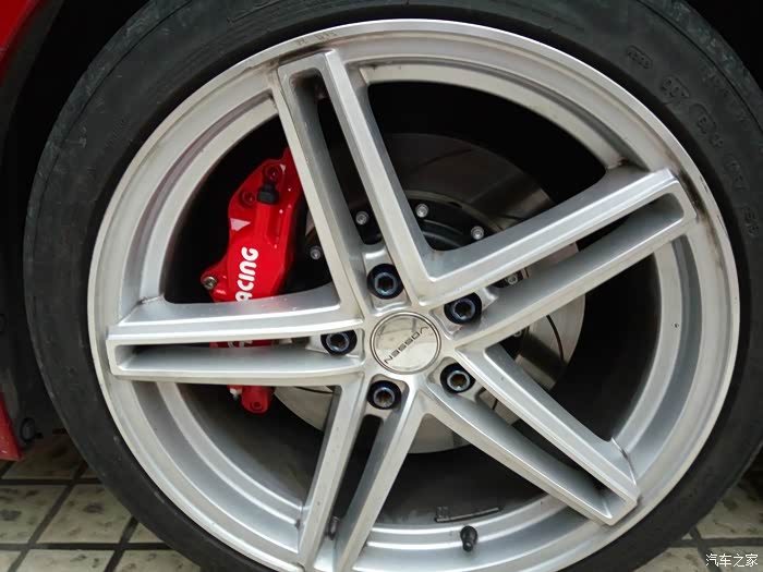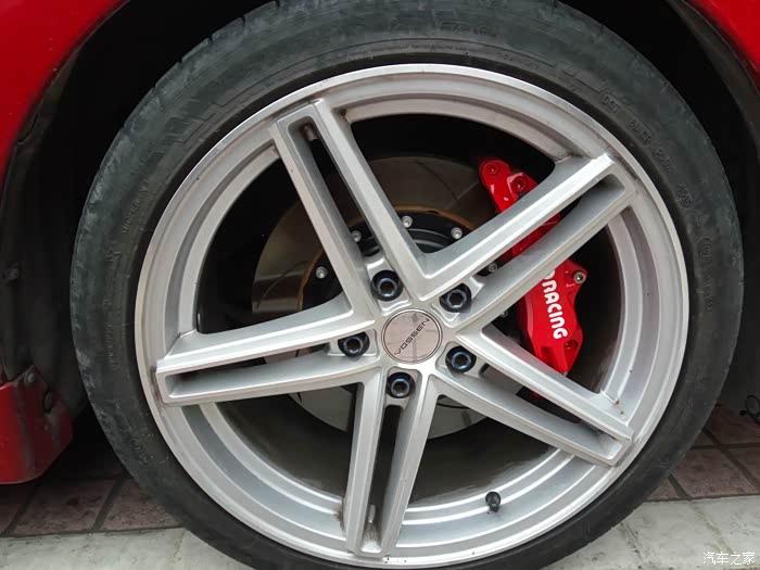 你说轮毂改大了,刹车应该提升吧,莫名其妙的就买了套刹车,台产AP5200带330划线刹车盘、桥码、刹车钢吼都有,3800也不贵,可能纠结的会说是假的,其实就一个山寨货,但是呢,效果比你原厂强10倍,你信吗?你原厂莫名其妙就ABS踩出来,这个想踩出来,除非你高速急刹车,不然几乎没有,对了,原厂刹车前1/4到1/3有虚位,也就是说,你得踩下去三分之一才能感觉到刹车,这个呢,一点就来。