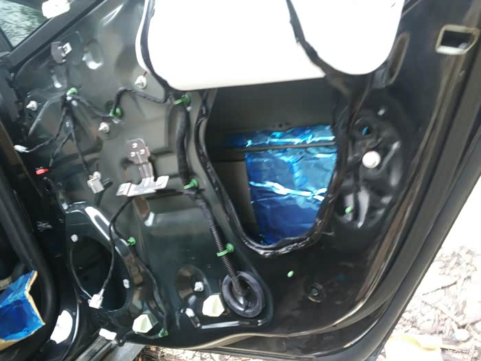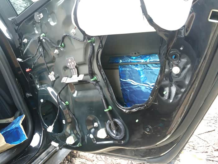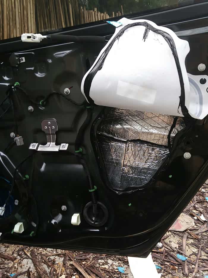 弄开就可以逐步施工了,先估算大约位置,先贴丁基胶,贴完后,再贴隔音棉。