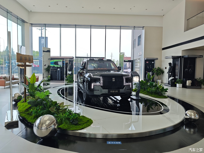 就仰望U8的外观,哪个男的看了不上头,感觉U8比库里南还要大气,店里摆放了两辆展车,一台是豪华版,一台是越野玩家版,