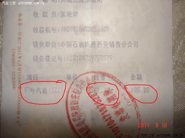 到西安加完油时的公里数