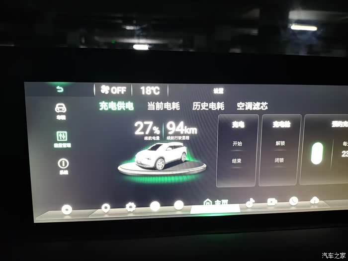 准备充电时电量剩余27%,还能跑94公里。希望这车能一直这么“虚标”下去,我就不会有续航焦虑了
