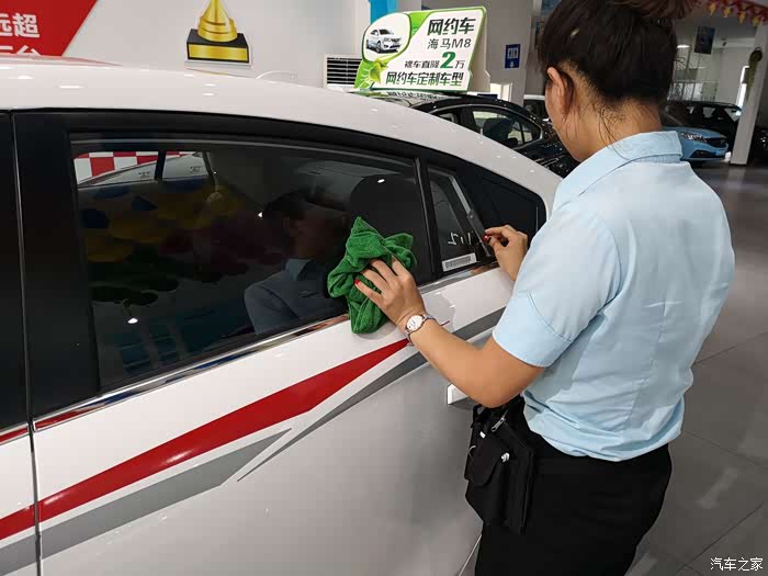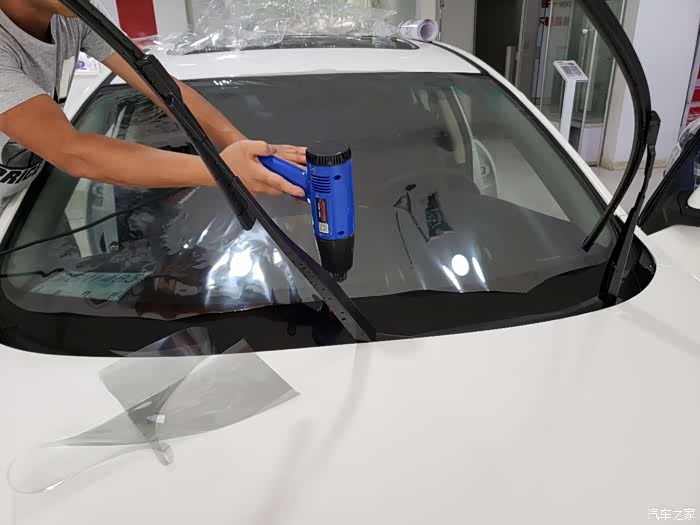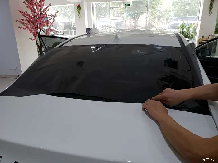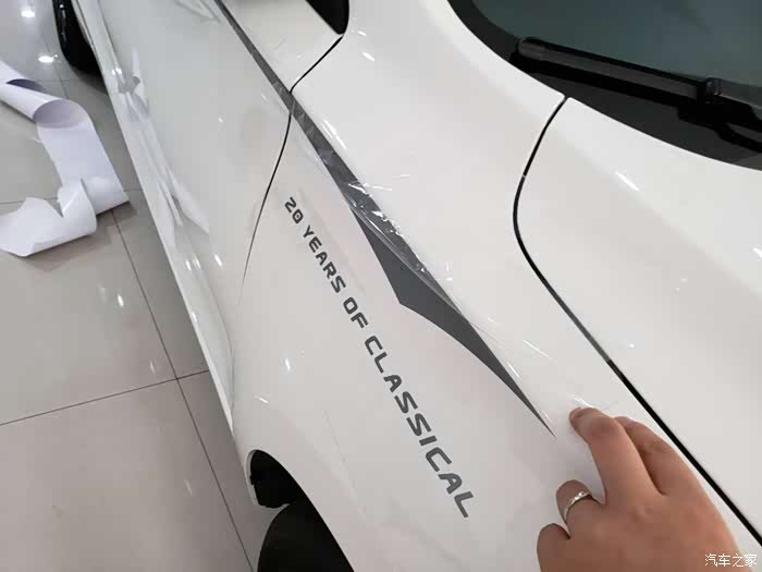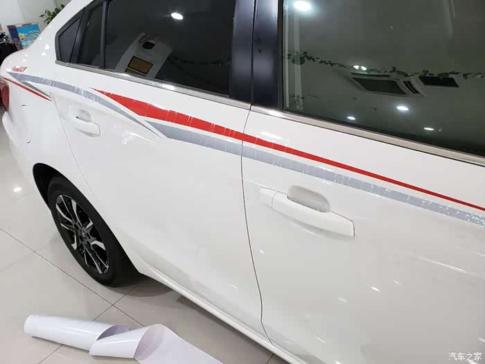 师傅正在贴膜,不知道大伙有木有发现提车时候的腰线没有了,当时订车的时候发现好看,就然销售给我送了一套,说提车的时候给我弄上,结果上牌的时候警察叫咱必须撕掉