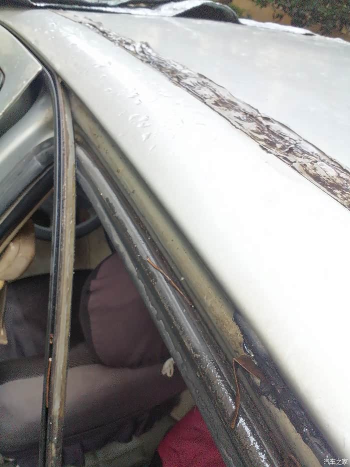 车顶的雨水被导流到这个位置,流出车外,这么明显的两个台阶,暴雨也不会流到车内