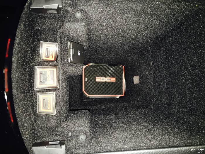 中央扶手箱下层,好深呀!还带12V点烟器电源。