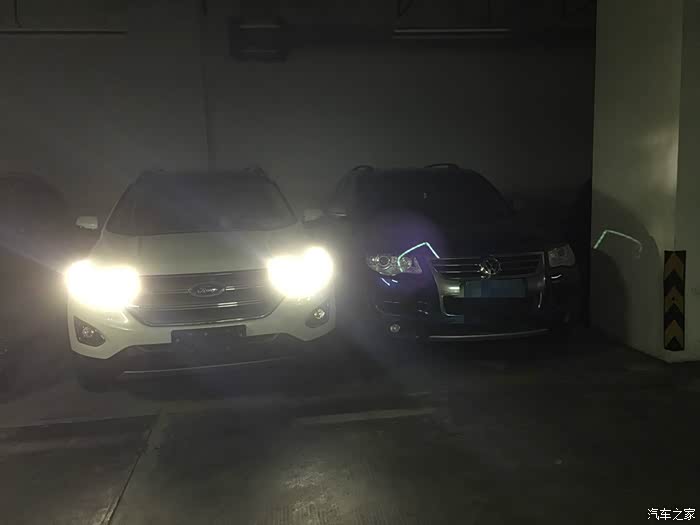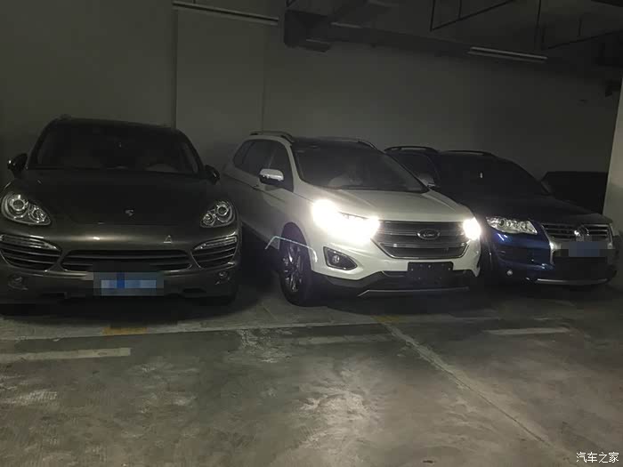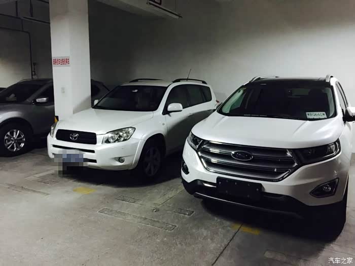 说了半天好处也说下缺点。锐界好在空间宽敞,缺点也在空间上了。1925那么好的车身宽度你为什么不把座椅的宽度再做大点呢?两边都离车门有一拳的距离,是成本原因还是欠缺?虽然有第二排右边座椅一键翻折,但是上第三排还是好困难,留下的上车空间太小了,设计师不能再好好考虑改良下。我买七座就是要用的不是放着看的,要用就要方便。不知道我上牌后加了侧面踏板会不会有所改观。下面上几张停在地库正好跟旁边的X3、RAV4、途锐、保时捷卡宴的尺寸对比。由于提车时间不长以后有感受再上作业。