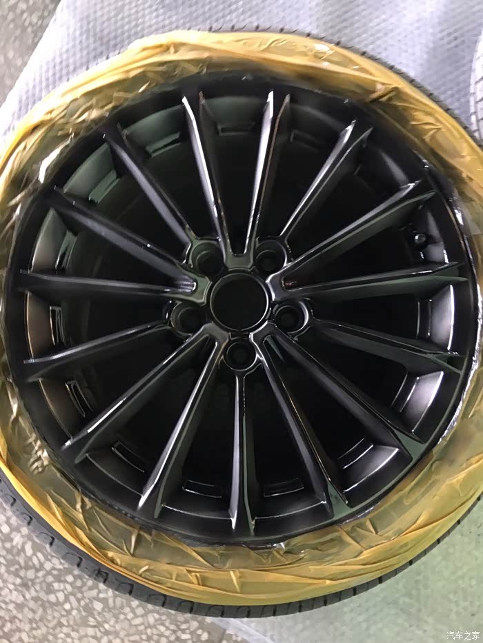 轮毂 也一起喷了哈哈 没有全黑 还有点灰 刚刚好 很配呢!