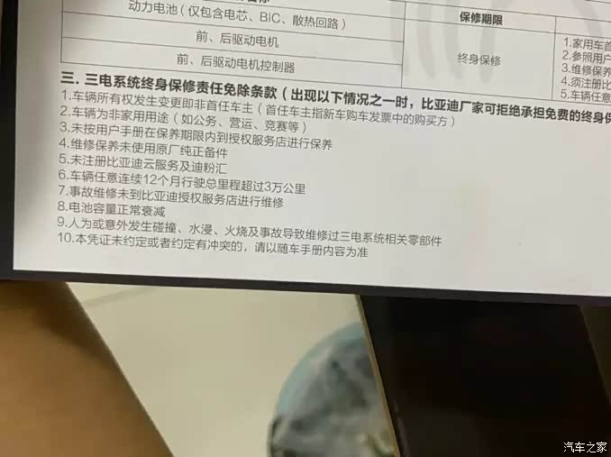非黑非水,普通消费者,就只想单纯的知道省的油钱够不够换电芯。说无条件终身保的,自己看车主手册(下图),特别是第六条。也别带节奏说超过3万是开出租的。上班通勤超过80公里每天,轻松一年过3万。真要卡开出租的,这个条件放宽到5万公里每年行不行?还是对电池不自信,扛不住5万公里每年?