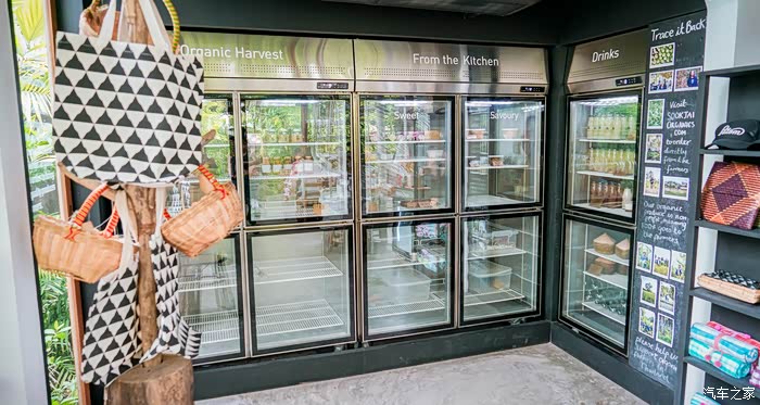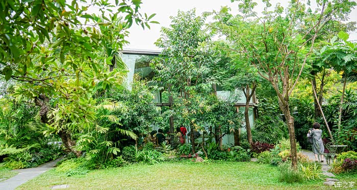 玻璃屋里光线太好,配合背景小花园里的满眼绿色,格外清新。据说全店都是使用可再生和可持续的建筑木材,其中所有的梁柱结构皆采用废旧的红木和塔巴克木材制作而成,随处可见环保,可见有机再生,并不是噱头说说而已,老板是真的很有意识在努力。