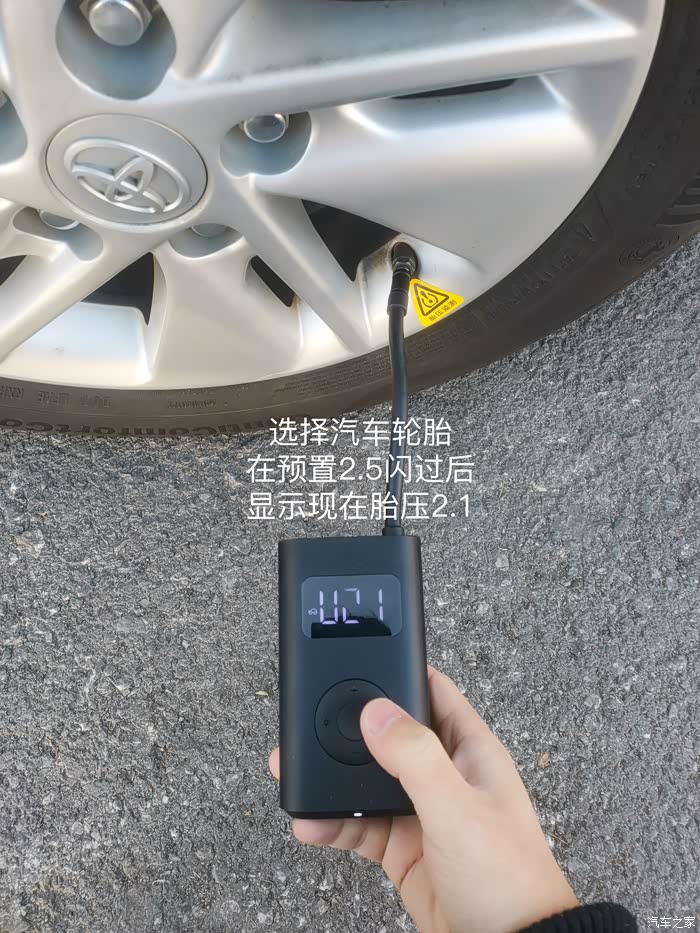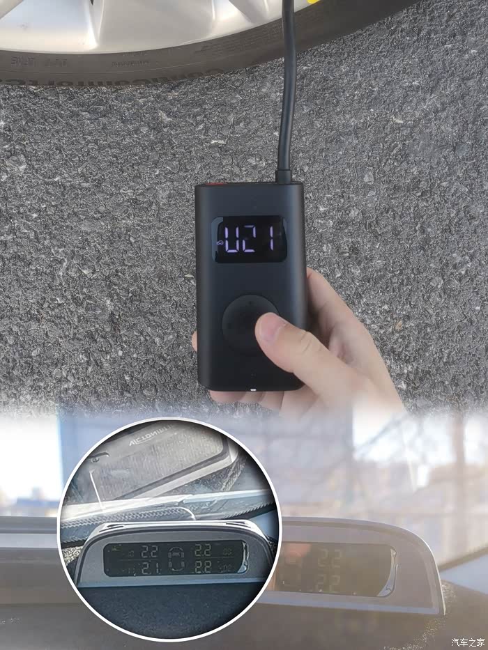 胎压监测显示左后2.1,充气宝也是2.1,胎压的准确度还是挺准确的