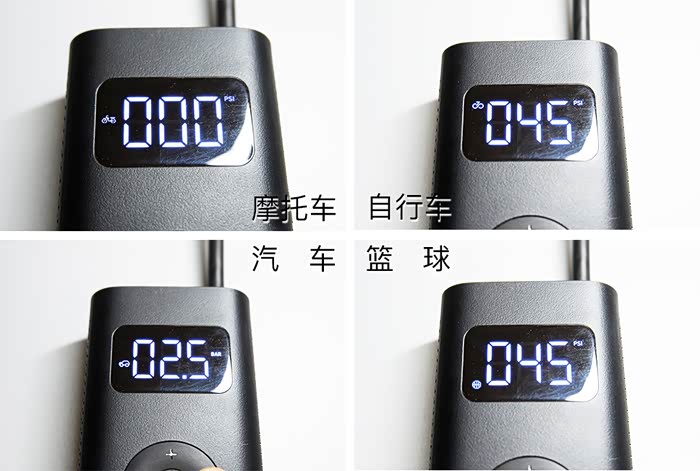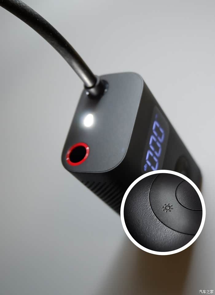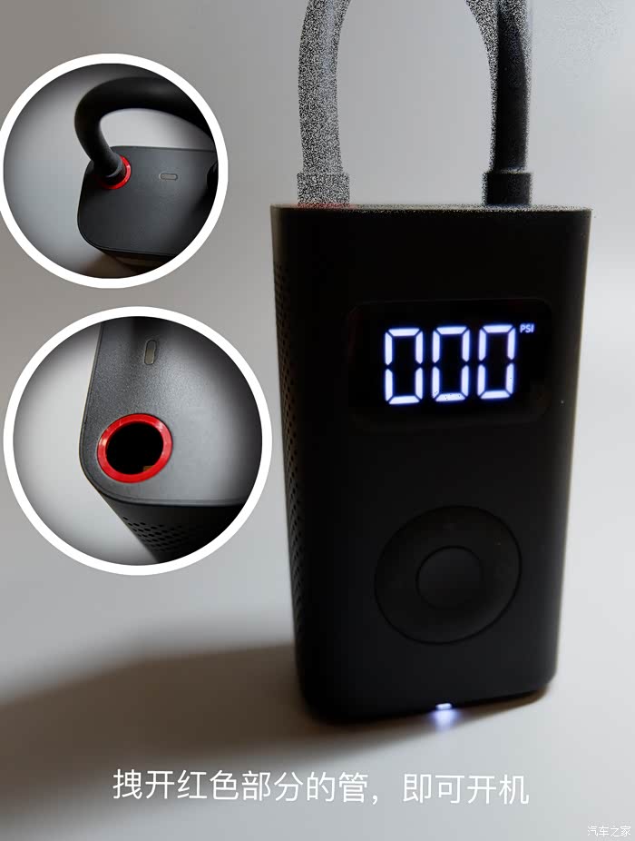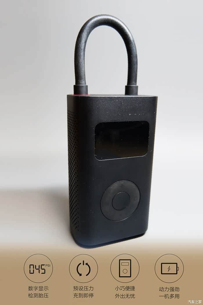 米家充气宝内置了数字传感器,打连接轮胎气嘴时,显示屏上就能精确的读出胎压。