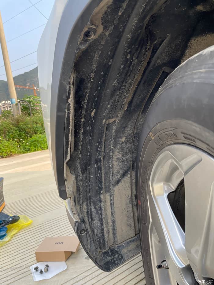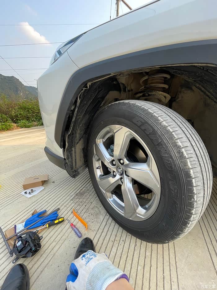 开始拆车,荣放雾灯直接拆前轮内衬,伸手进去就能够到。