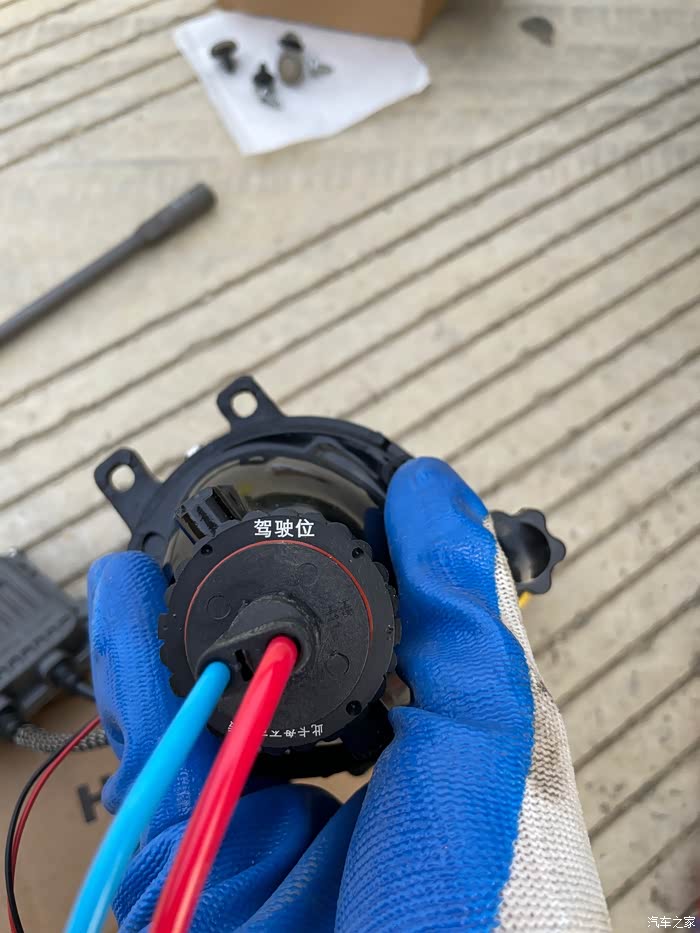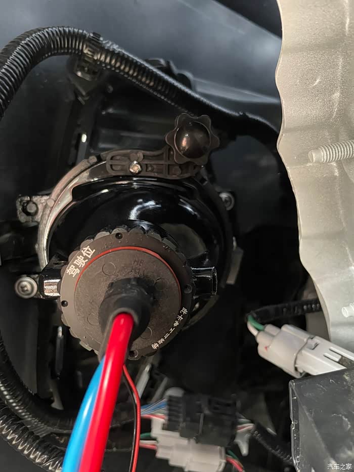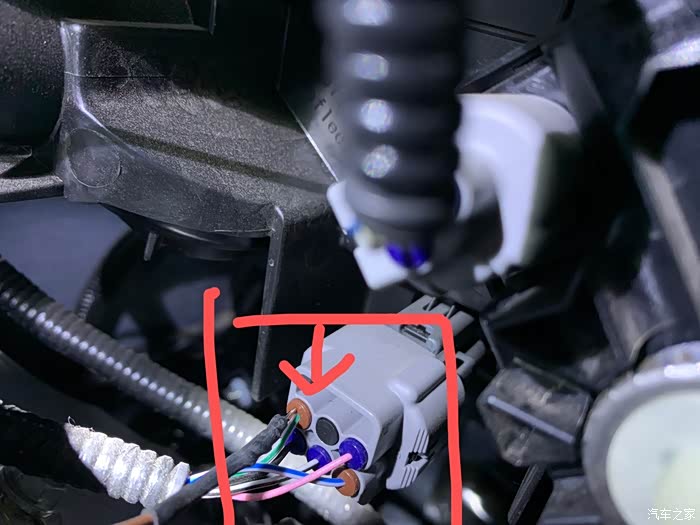 一根线带针头的(买透镜配套有的) 直接插在原车大灯远光感应的那一组线里,上图左上角棕色的就是。
