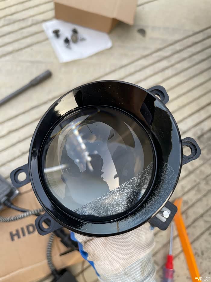 这是买来的雾灯总成,组装完毕,氙气灯,带透镜,可调节远近光。