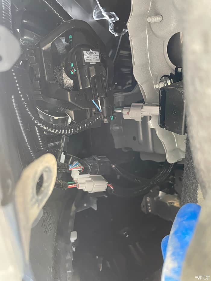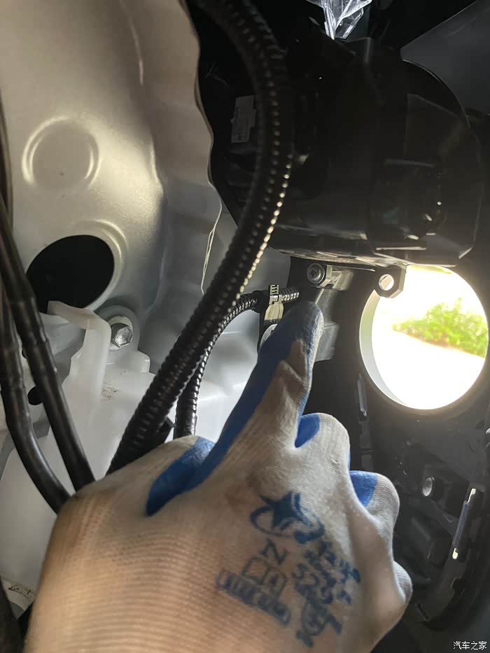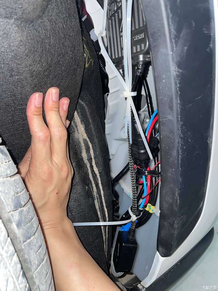 安装好后。用扎带固定,多余的剪掉就好,原车插头无损对插。