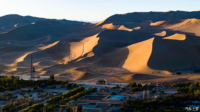 这是从景区大门拍摄的,早上的阳光照在沙丘上,层次感更好。