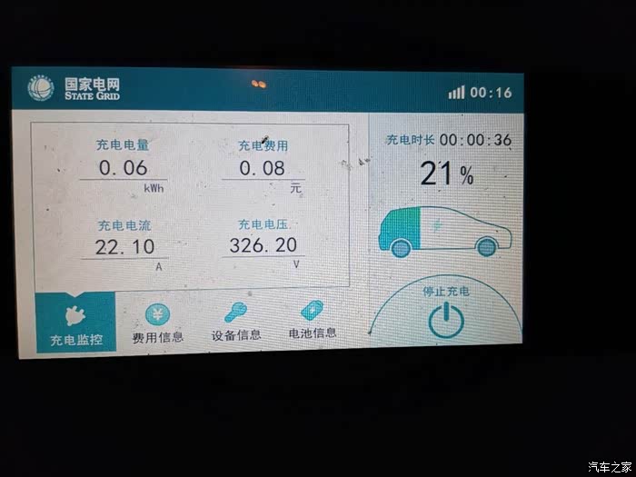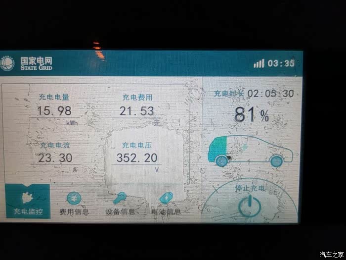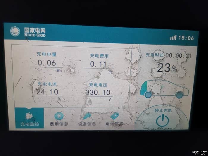 东光服务区到了,这次是有个油车占位,到这里以前就已经不显示电量了,插上充电枪知道还有8个电量,江淮IEV5设计是剩余10%的电量不再显示,强制车主去找充电桩充电,我认为这也是个人性化设计,为江淮点赞!不显示电量一般还可以跑20公里的路程,所以我倒是没有担心!另外,这次充电两个多小时,我们一直在车里小睡,江淮电动汽车充电时,打不着车,但是空调可以正常使用,所以,我们待在车里虽然不是很舒服,但是,是很暖和的!这里最大电流23.3,充到81%,我觉得可以到德州了,于是,收枪,出发德州!