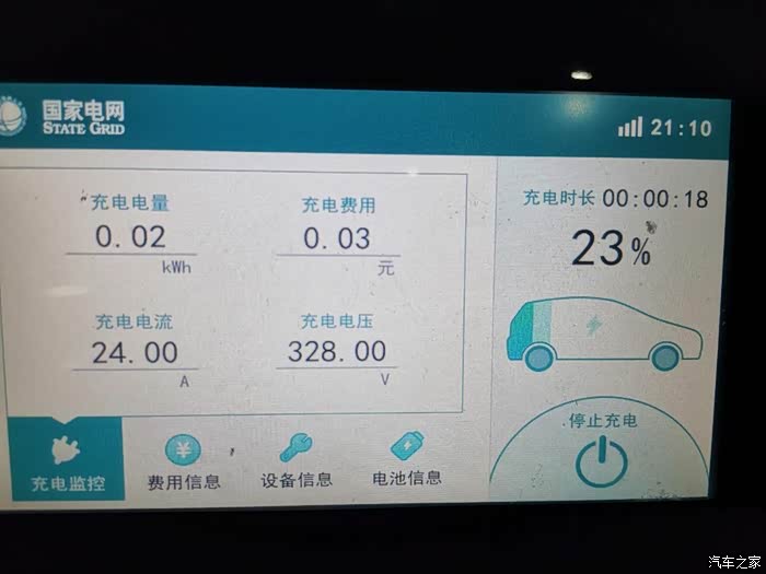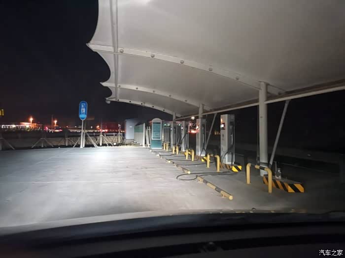 到了河北沧州服务区咱的IEV5电动汽车还有21%的电量,充电桩区域依然是空无一车,插上充电枪充电!这里的桩充江淮IEV五比较慢,电流始终22左右,不知是夜深降流了,还是桩的问题,到42%,算计一下可以到东光服务区,决然前行!