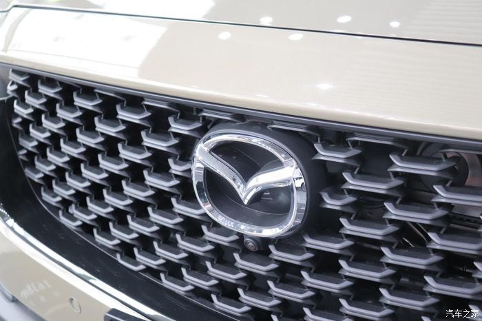 马自达的车标看起来很大气。前脸是大尺寸的进气格栅,听销售说,这块不仅采用了黑化处理,而且内部所使用的材质还具有高光高韧性的特质,能够在低速撞击下不碎裂,长时间光照也不变形,感觉很高级啊。