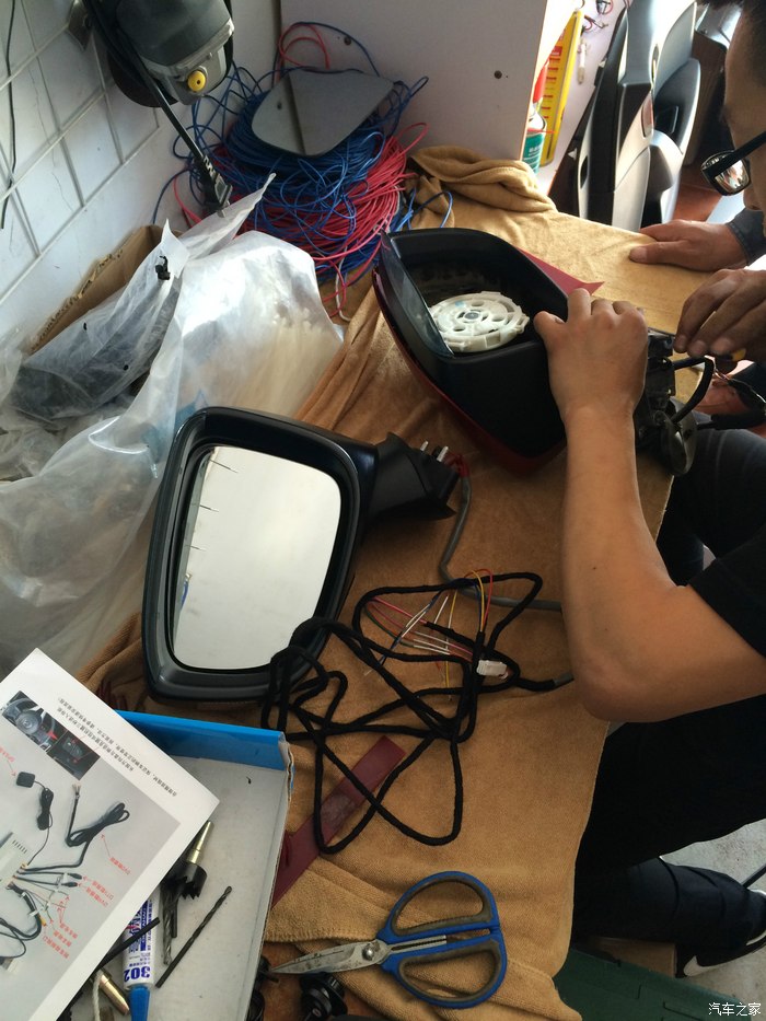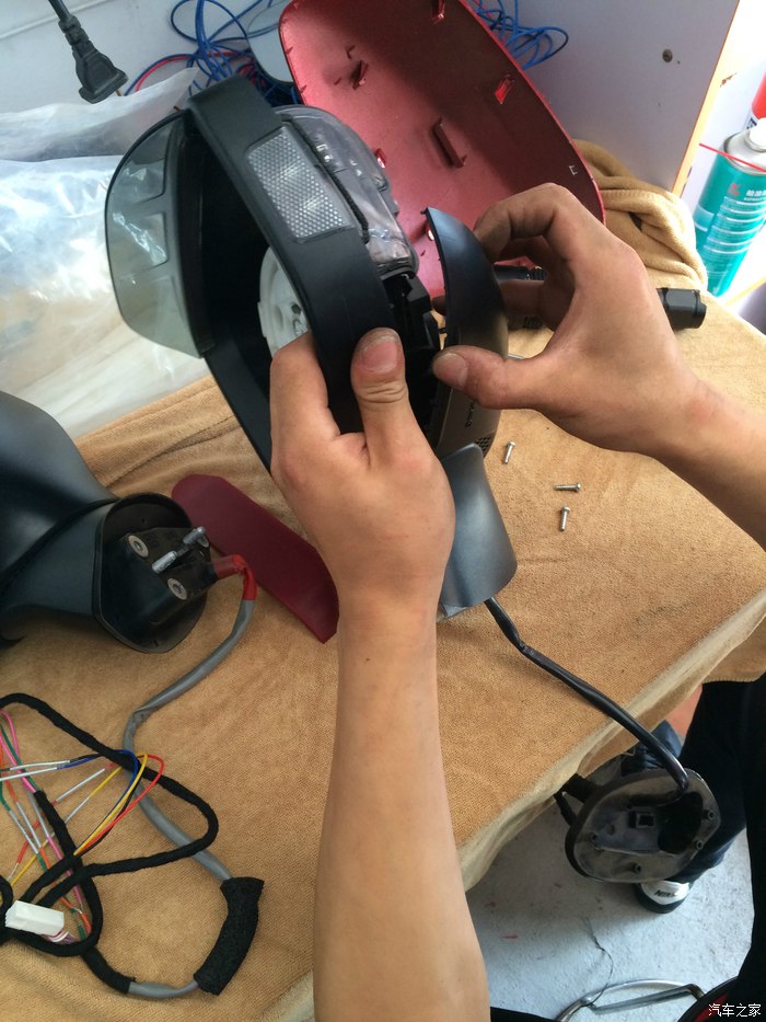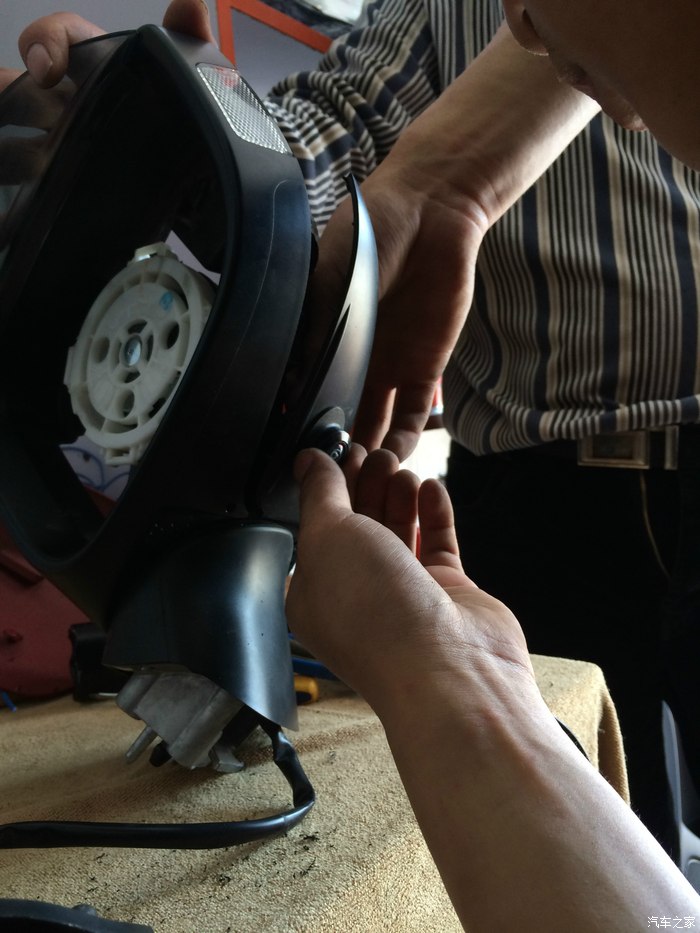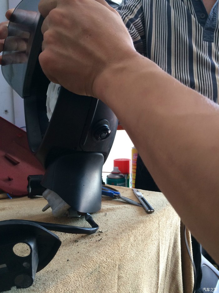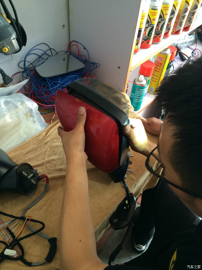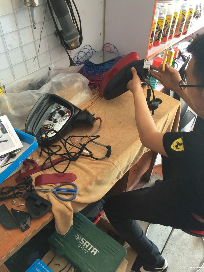 这是在拆反光镜,老板的老爸也帮忙了,老板的老爸是不是应该叫老老板了