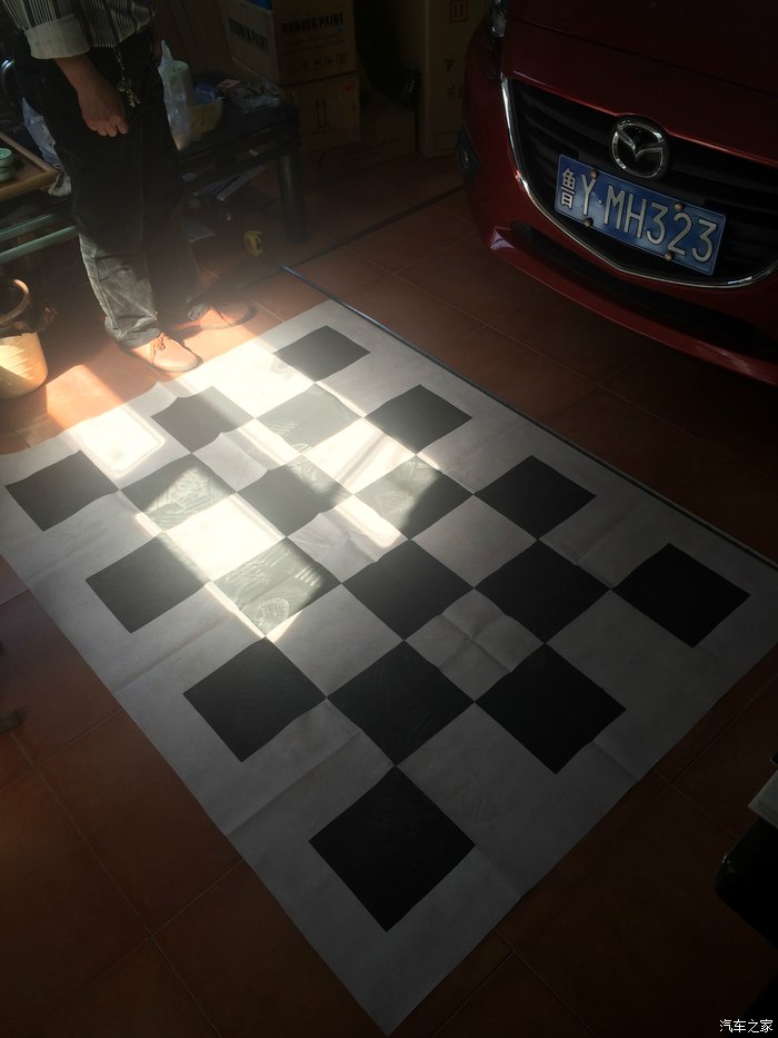 老板很仔细,正在用卡尺量两边的距离,保证两个反光镜的摄像头距离一致!