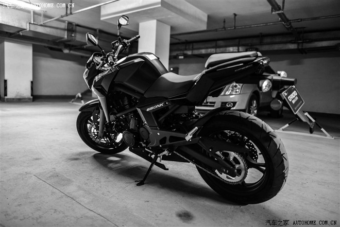 综合比较,CF650NK在加速上有很大的优势,车身纤细协调,的确适合单纯追求速度性能的车友,各种配置比较厚道,车身做工上几乎无可挑剔,无论是灯光、漆面还是各种小细节,在排气管下方还安置了底盘罩。坐姿比较舒适但个人认为重心偏高,带来的心理压力较大,当然这也是一己之见。在声音上CF650NK没有任何值得提出的特点,动静比较小,在亮骚上与BN600比还是逊色不少,轮胎尺寸、减震、后摇臂、双出菊花这几样抓眼球的东西是很难吸引外貌协会的朋友们垂青的。从心理上说我还是非常喜爱和支持春风动力的,他们的产品还是很精致厚道的,能够代表一流国产水准的,尤其是被委以生产国宾专用摩托,用的发动机也就是这款650NK的发动机的改良版,驾驶春风有一种心理上的技术优越感。