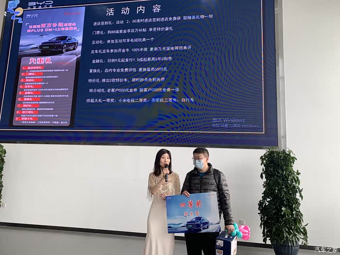 最美人间四月天,万物自然来!给大家带来订车送豪礼的活动。作为比亚迪的忠实迪粉的一员,当然要去见证这值得纪念的时刻。通知说上午10点准时开场,我们比较积极周末一早 带着女儿9点半就到达店里了。不得不说场面很“豪”,也隆重。礼品特别丰厚,不仅百万补贴,而且还有终极大礼一等奖:小米电视,二等奖:茶吧机,三等奖:自行车。下面让我们一起来感受下此次活动现场的氛围吧!