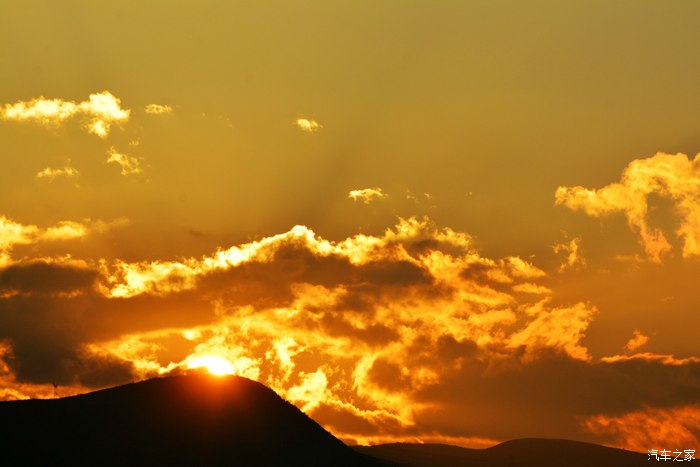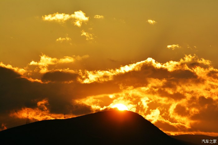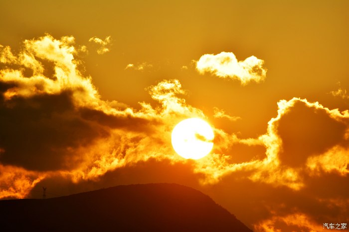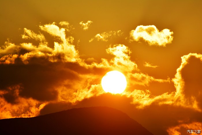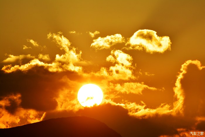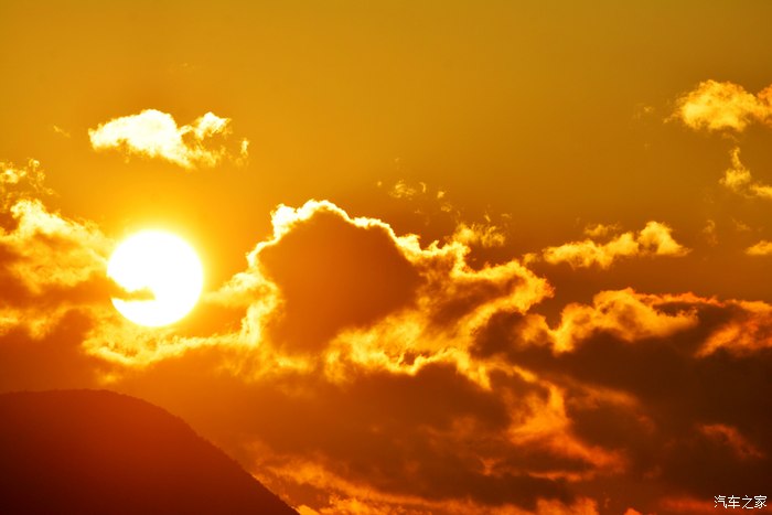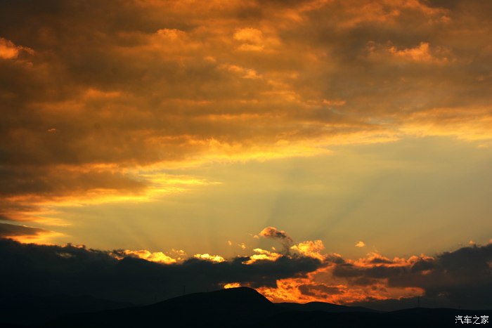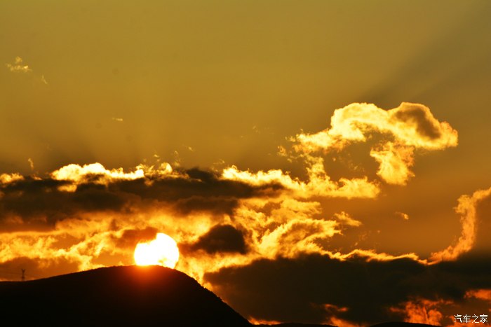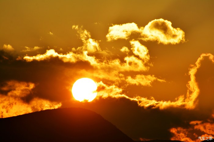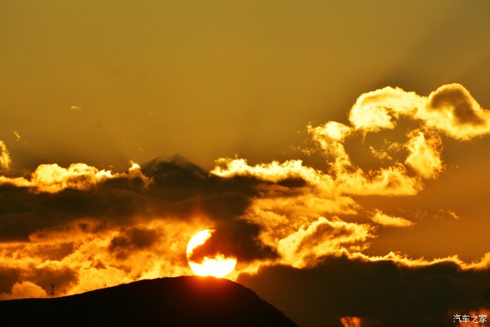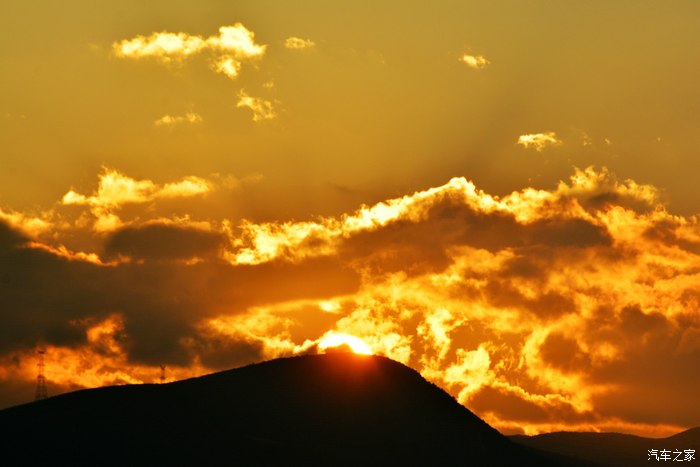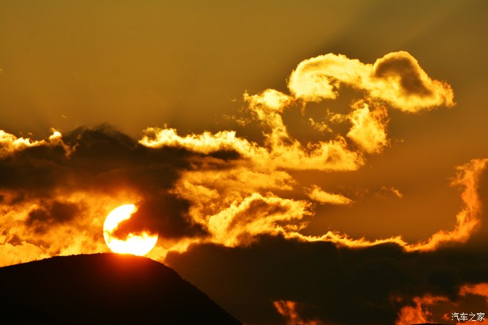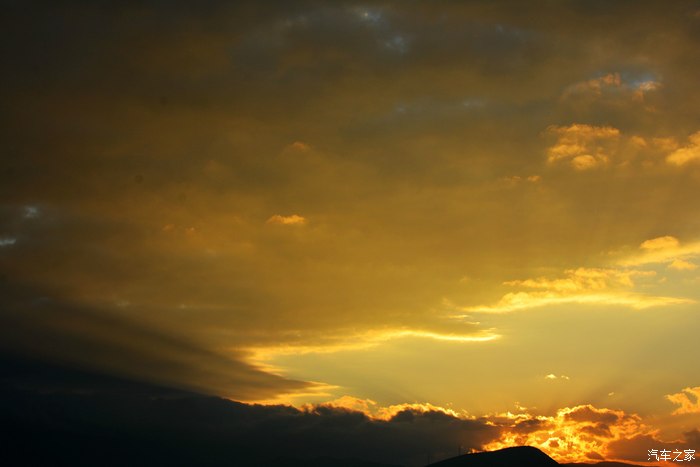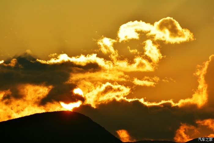 2,小山顶山的这片乌云,似乎还想极力地阻挡这即将喷发出的一团火焰。。。。。。